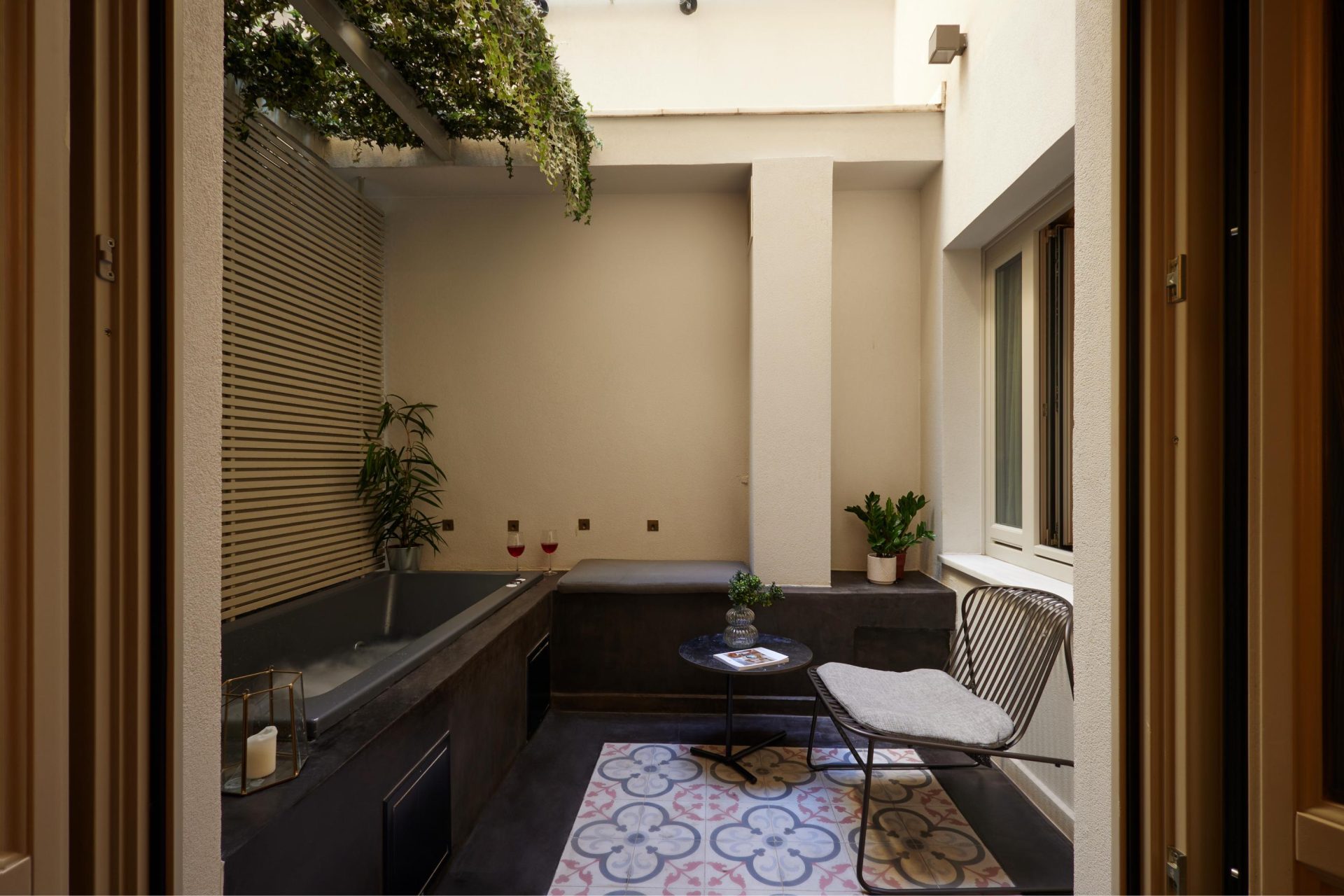 1890 Fresco – 29m² room on the first floor with access to a private outdoor backyard and hot tub