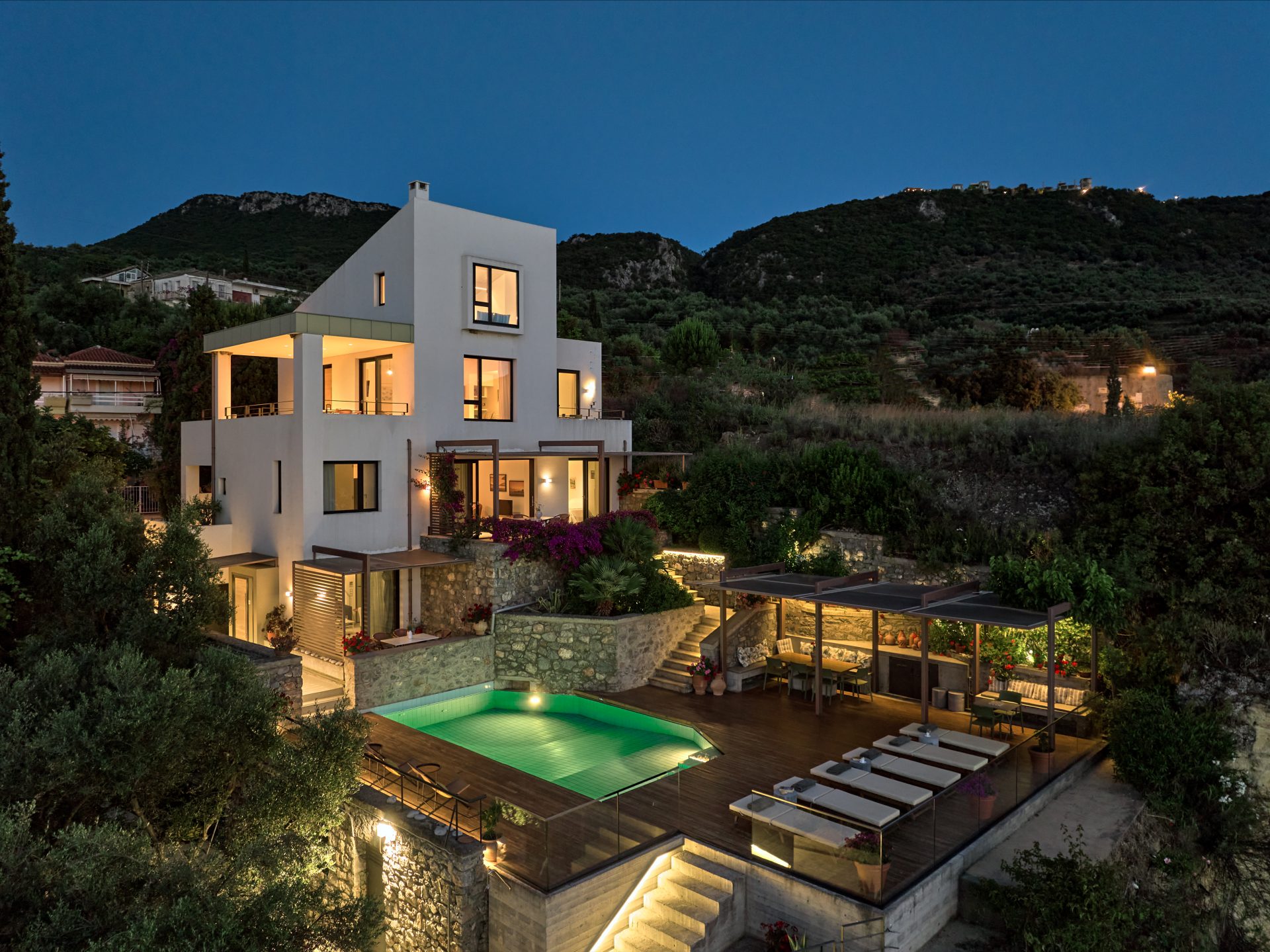 The complex, which extends on three levels, is surrounded by flower gardens and a beach with exclusive access. It has 3 luxurious and comfortable apartments with excellent views of the Messinian Bay from which guests can enjoy the most beautiful sunsets in the area.