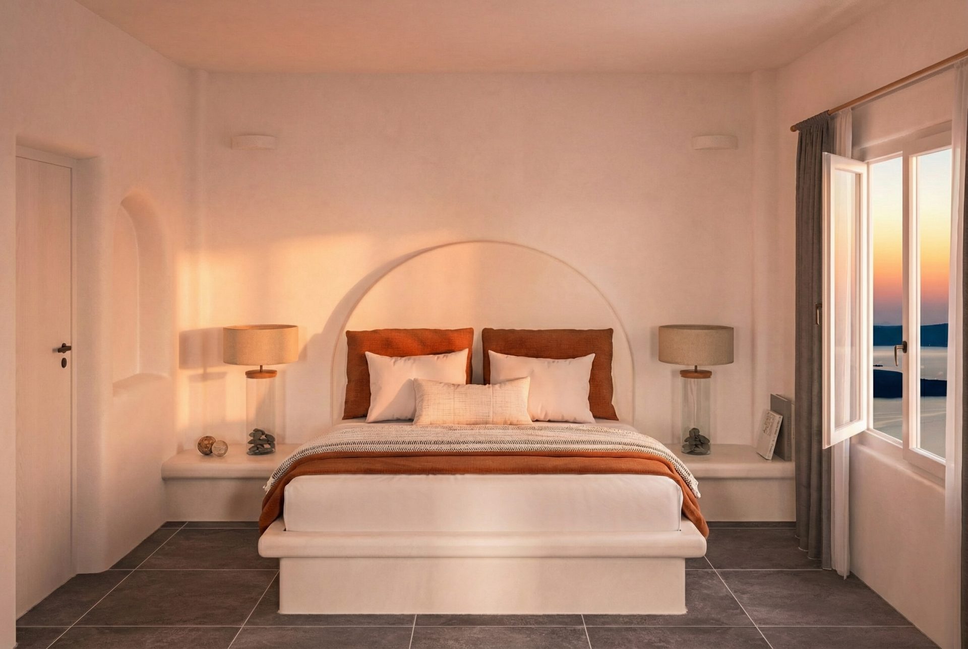 Nestled in the charming village of Manolas on Thirassia, The Duchess offers a peaceful escape surrounded by traditional Greek architecture and the unspoiled beauty of the Aegean Sea. From the moment you arrive, you’ll be greeted with modern amenities, plush furnishings, and a warm ambiance that invites you to feel right at home.