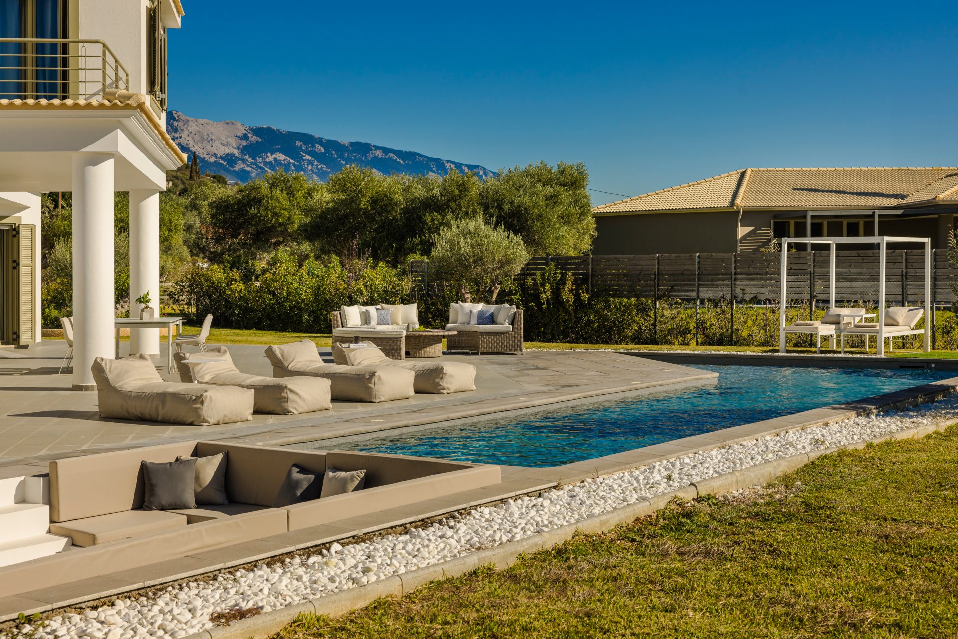 Villa Felicity is a supreme villa residence nestled in the tranquil village of Svoronata, just minutes from Kefalonia International Airport, and the island’s vibrant capital, Argostoli. Blending luxury with wellness, the villa now offers a unique Salt Water Therapy Spa experience, making it an ideal retreat for relaxation, rejuvenation, and escape. Offering a perfect blend of privacy, luxury, and comfort, this elegant villa is designed to provide a seamless indoor-outdoor living experience, ideal for those seeking relaxation in a serene environment.