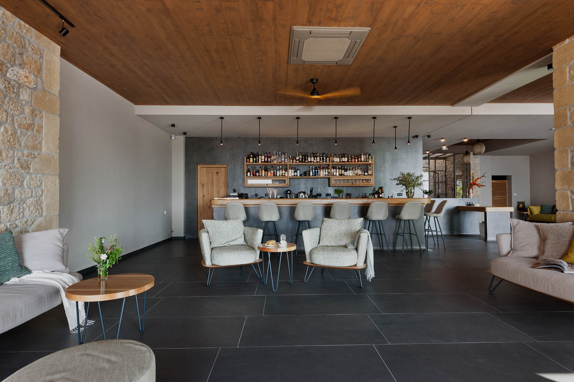 Diapori Suites Hotel offers an ample open space, flooded with the revitalizing Greek light, were guests & travelers can unwind and relax The open plan living area boasts a lounge with an inviting bar and a warming fireplace where guests can enjoy their drink. The wonderful dining venue, offers both indoor and outdoor feasting experiences. Here, every morning an inspired buffet breakfast offers an abundance of choices to start your day in a blissful way!